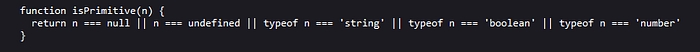 This function will iterate over each key on an object and assigning each value to the target object. For each key a check is made using the isPrimitive function.
