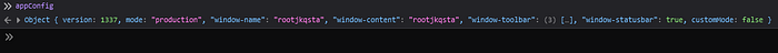 If we send the query string ?config[window-toolbar][constructor][prototype][1]=8080 we will get the following output in the console.