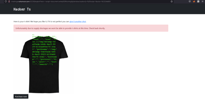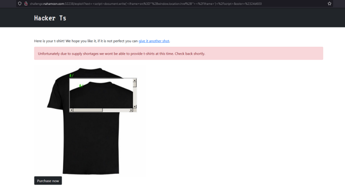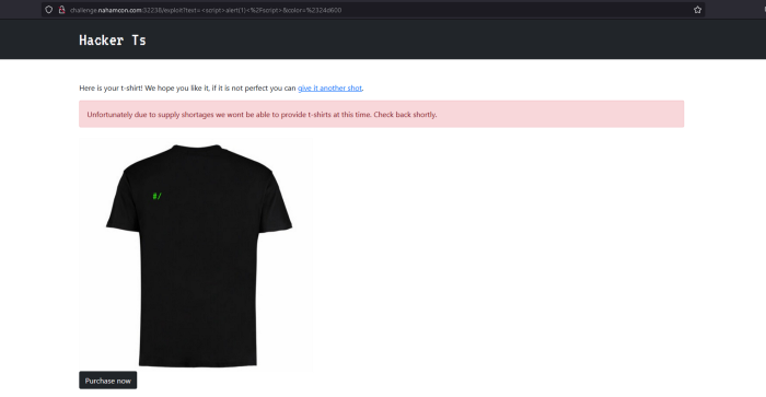 Okay description is about Hacker T-shirts. So let’s access to the given URL.