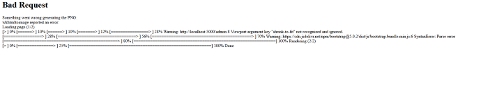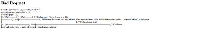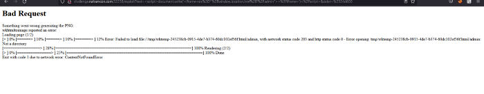 We got a error and it is telling us that there’s a problem generating PNG and wkhtmltoimage is being used. The reason why did we got error was because it was appended to the admin which we didn’t append to the window.href.location and it is not valid. But what about having our <iframe> source to be /admin?