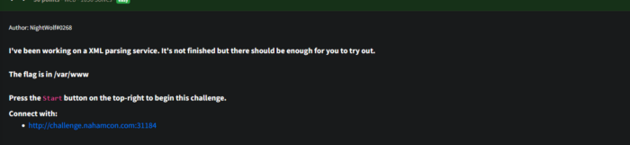 So this is the challenge. It’s about XML parsing service. I am happy because they added something about XXEi. Let’s visit the URL of the challenge.
