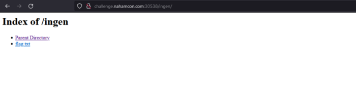 And lead us to the index of /ingen and there’s flag.txt. This directory traversal is fun.