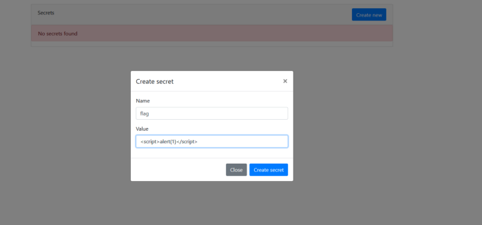 Alright I typed flag as a name and our value will be <script>alert(1)</script> I typed this as a value because I want to see is it gonna be executed as a JavaScript code. If It gets executed then we can confirm XSS.