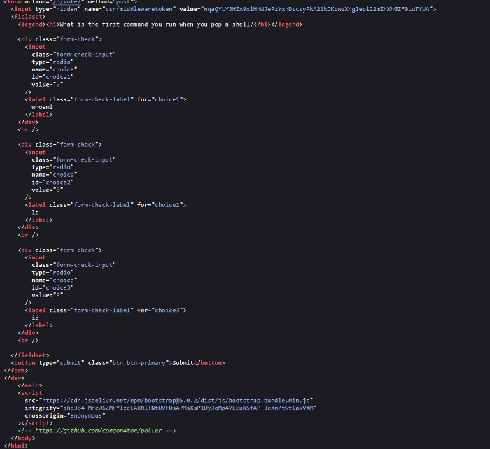 It seems like this code runs upon sending a request to the endpoint / either using GET or POST method. So, let’s try to submit a request to see how the web app responds.